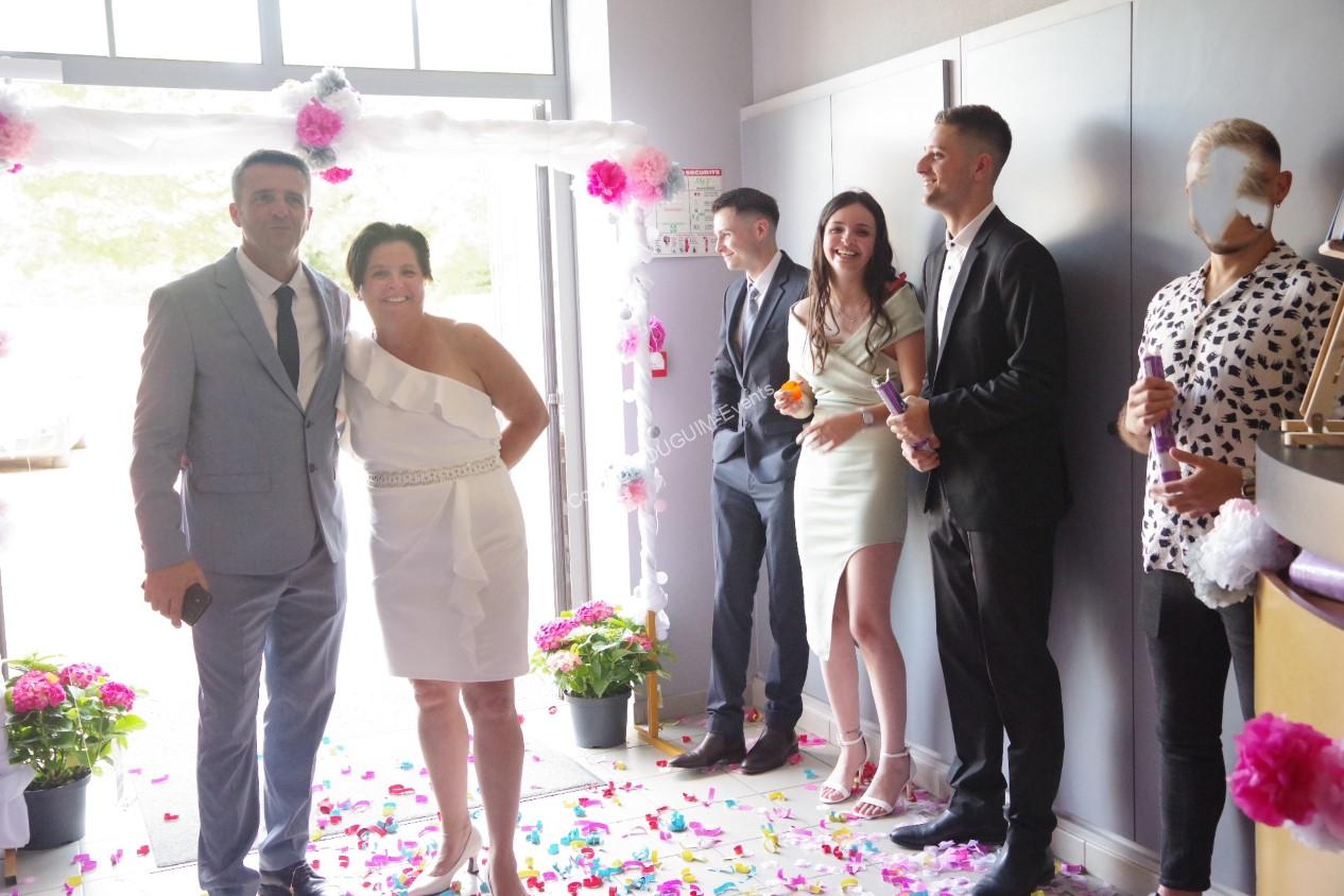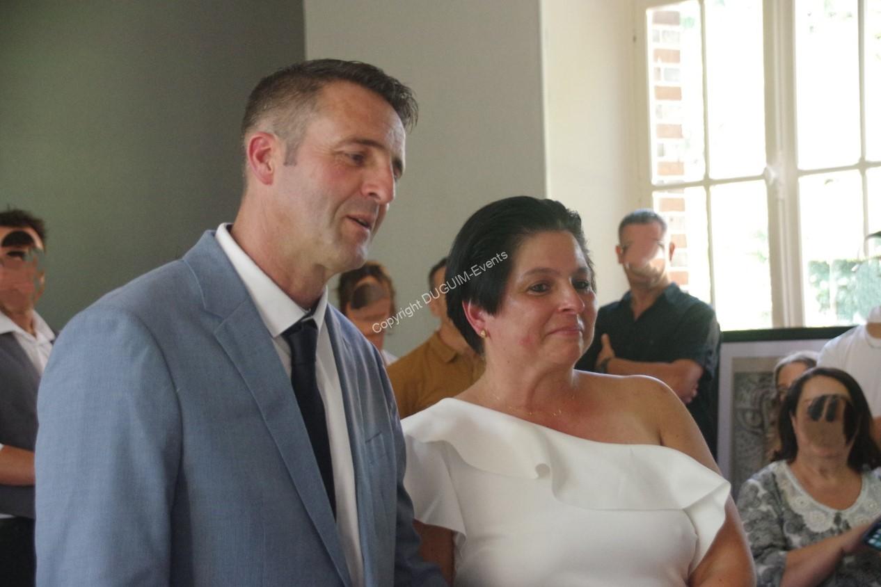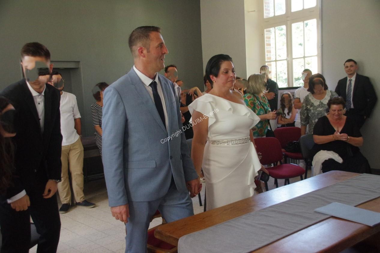 17H Reportage photo lors de la cérémonie à la Mairie dans le Loiret, à l’intérieur de la Mairie et à l’extérieur de celle-ci sous un soleil radieux.